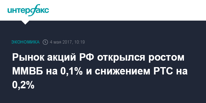 Рынок акций РФ открылся ростом ММВБ на 0,1% и снижением РТС на 0,2%