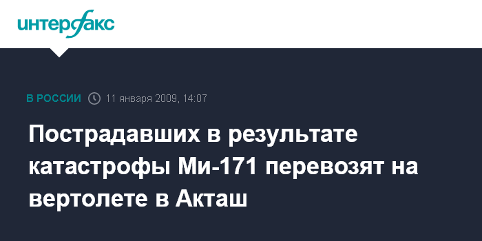 Москва. 11 января. INTERFAX.RU - Вертолет с пострадавшими в результате катастрофы Ми-171 на борту в настоящее время направляется в поселок Акташ, где развернута передвижная реанимация, сообщил агентству "Интерфакс-Сибирь" губернатор Республики Алтай Александр Бердников.