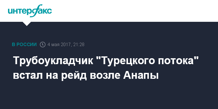 Москва. 4 мая. INTERFAX.RU - Трубоукладочное судно Audacia компании Allseas в четверг пришел в район Анапы и на данный момент встал на рейд вблизи российского берега. Об этом свидетельствуют данные глобальной системы позиционирования морских судов.