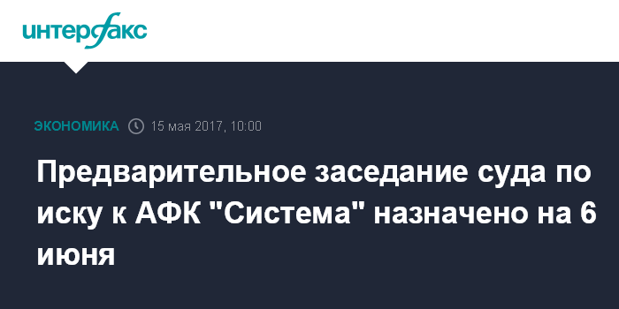 Москва. 15 мая. INTERFAX.RU - Предварительное заседание суда по иску "Роснефти" и "Башнефти" к АФК "Система" на 106,6 млрд рублей назначено на 6 июня, следует из информации в картотеке арбитражных дел.
