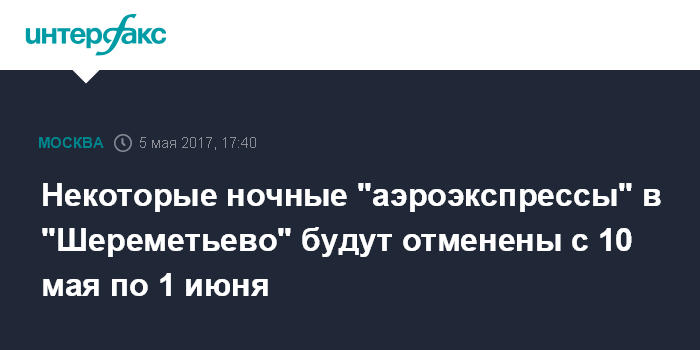 Некоторые ночные "аэроэкспрессы" в "Шереметьево" будут отменены с 10 мая по 1 июня