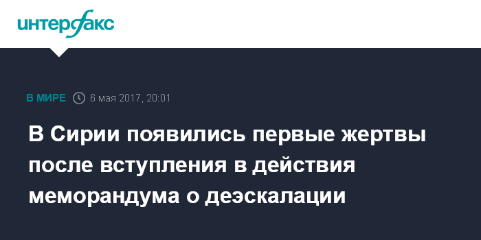 AP отмечает, что это - первые данные о гибели людей во время боевых действий с момента вступления в силу в субботу меморандума о создании зон деэскалации в Сирии. В сообщении не уточняется, проходил ли бой в Деръа на территории одной из подобных планируемых зон.