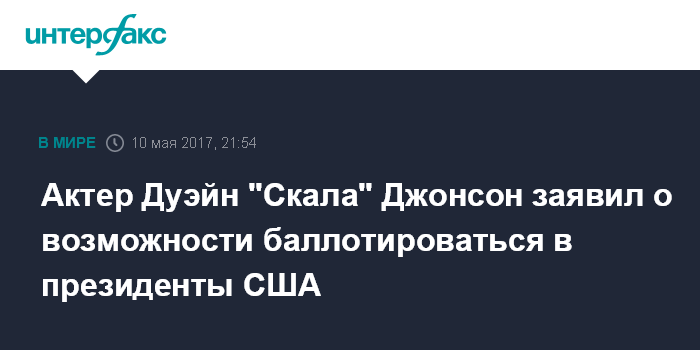 Москва. 10 мая. INTERFAX.RU - Голливудский актер и рестлер Дуэйн "Скала" Джонсон заявил о "реальной возможности" своего участия в гонке за пост президента США.