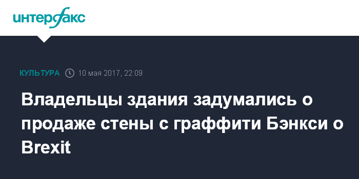 Москва. 10 мая. INTERFAX.RU - Владельцы здания в английском Дувре, на котором британский художник Бэнкси нарисовал граффити, посвященное выходу Великобритании из ЕС, могут отколоть часть фасада с изображением и продать его, сообщает в среду газета The Tepegraph.
