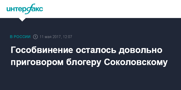 Гособвинение осталось довольно приговором блогеру Соколовскому