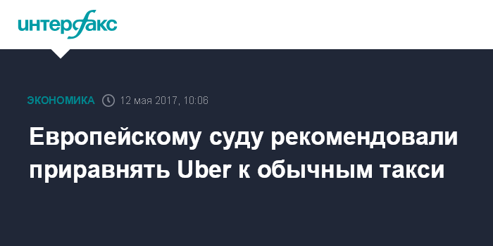 Москва. 12 мая. INTERFAX.RU - Сервис Uber по сути является транспортной компанией и должен соответствовать тем же требованиям, что и обычные такси, говорится в докладе генерального адвоката Европейского суда. Сама компания считает себя поставщиком информационных услуг и является посредником между водителями и клиентами.