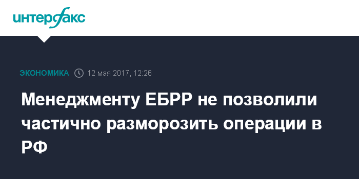 Москва. 12 мая. INTERFAX.RU - Менеджмент Европейского банка реконструкции и развития был готов частично разморозить операции в РФ, приостановленные летом 2014 года, но не получил разрешения от крупнейших акционеров, заявил управляющий от РФ в ЕБРР, глава Минэкономразвития Максим Орешкин.