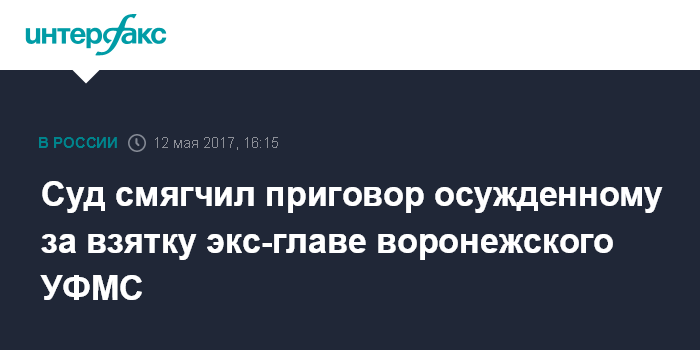Суд смягчил приговор осужденному за взятку экс-главе воронежского УФМС