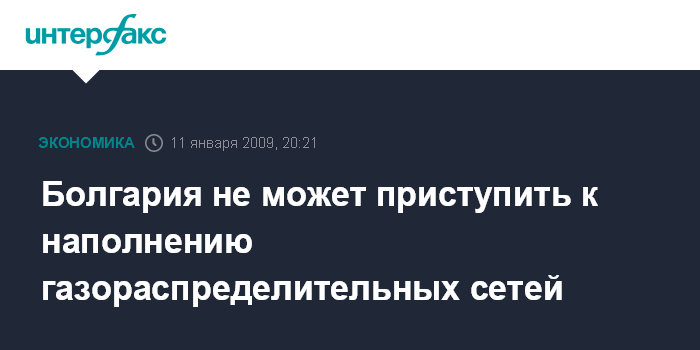 Москва. 11 января. INTERFAX.RU - Поставки в Болгарию российского природного газа, следующего транзитом через Украину и Румынию, возобновить пока невозможно ввиду технологических проблем, приводит в воскресенье болгарская радиостанция "Дарик-радио" слова министра экономики и энергетики страны Петара Димитрова.