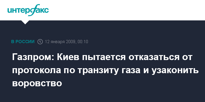 Москва. 12 января. ИНТЕРФАКС - В "Газпроме" считают, что Украина пытается отказаться от подписанного протокола по транзиту газа и узаконить воровство.