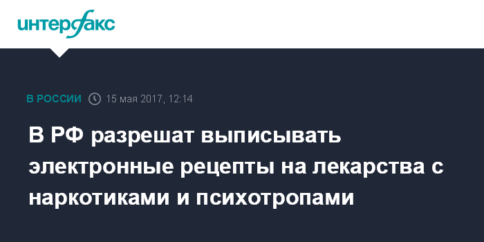 Москва. 15 мая. INTERFAX.RU - Правительственный законопроект о телемедицине предусматривает также возможность выдачи рецептов на лекарства, в том числе на препараты, содержащие наркотические средства в электронной форме.