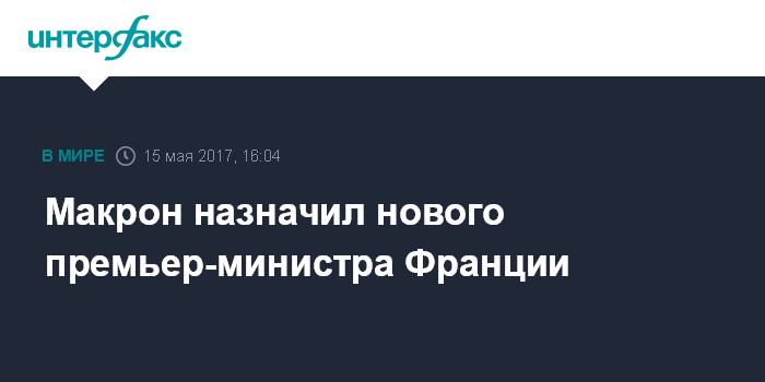 Москва. 15 мая. INTERFAX.RU - Президент Франции Эммануэль Макрона принял решение назначить премьер-министром страны Эдуара Филиппа.
