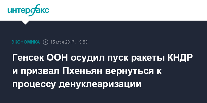 Генсек ООН осудил пуск ракеты КНДР и призвал Пхеньян вернуться к процессу денуклеаризации