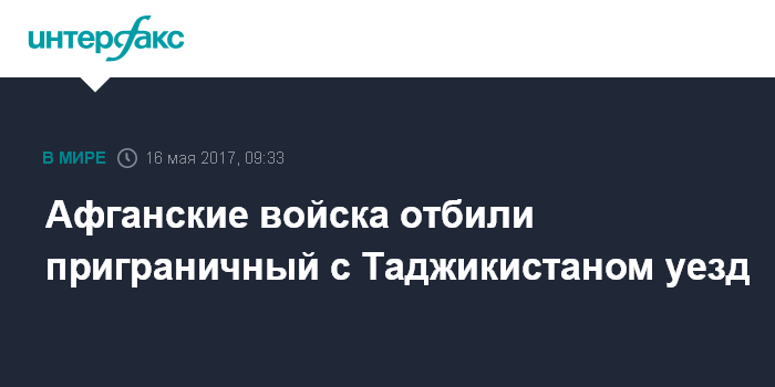 Москва. 16 мая. INTERFAX.RU - Афганские военные заявляют, что вернули под свой контроль приграничный с Таджикистаном уезд Калаи-Зол провинции Кундуз, расположенный на северо-востоке страны.