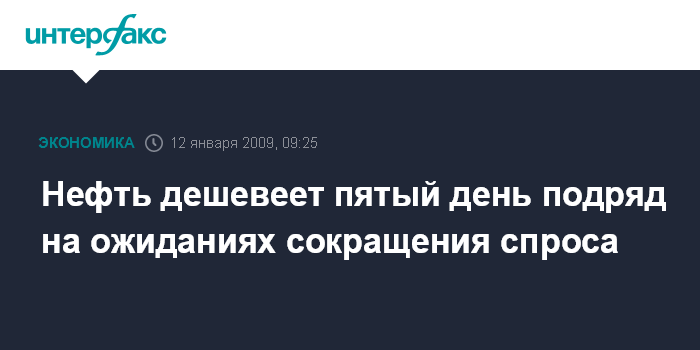 Москва. 12 января. INTERFAX.RU - Нефть дешевеет пятый день подряд на ожиданиях сокращения спроса и недостаточности мер ОПЕК по ограничению добычи, сообщило агентство Bloomberg.