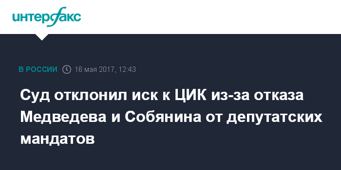 Суд отклонил иск к ЦИК из-за отказа Медведева и Собянина от депутатских мандатов