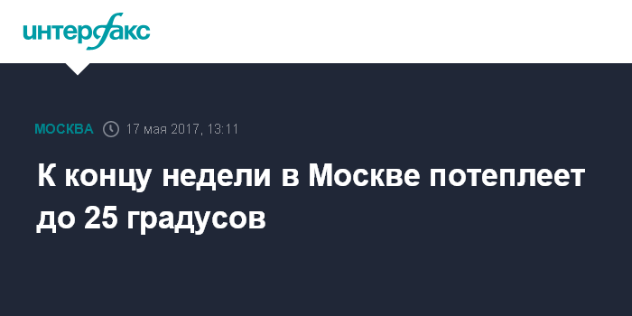 Москва. 17 мая. INTERFAX.RU - Температура воздуха в Москве 19 мая перешагнет отметку в 20 градусов, сообщает Гидрометцентр России. По прогнозу, в пятницу в столице потеплеет до 21, по области - до 22 градусов.