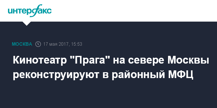 Кинотеатр "Прага" на севере Москвы реконструируют в районный МФЦ