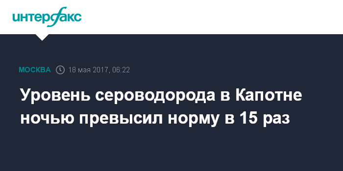 Ранее "Интерфакс сообщал", что 17 мая в районе Капотня на протяжении 12 часов длился выброс сероводорода, ПДК м.р. вредного вещества отклонялась от нормы в 2,9-51,4 раза.