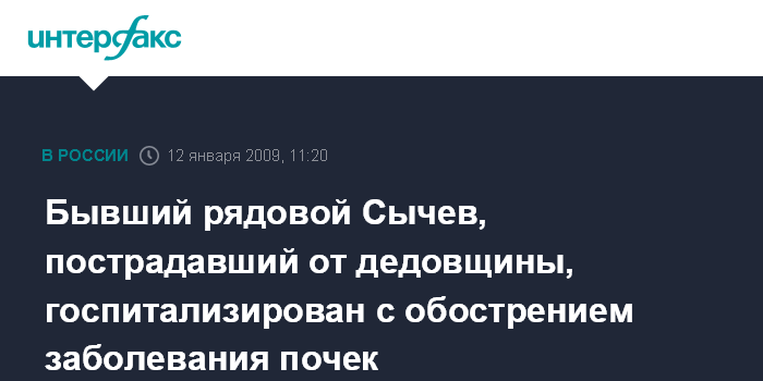 Бывший рядовой Сычев, пострадавший от дедовщины, госпитализирован с обострением заболевания почек