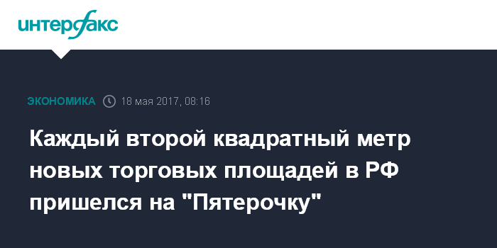 Каждый второй квадратный метр новых торговых площадей в РФ пришелся на "Пятерочку"