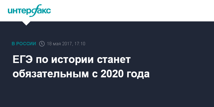 Москва. 18 мая. INTERFAX.RU - Единый государственный экзамен по истории станет обязательным с 2020 года, заявила министр образования и науки Ольга Васильева.