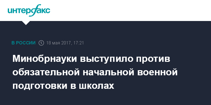 Москва. 18 мая. INTERFAX.RU - Вводить всеобщую начальную военную подготовку в школах в качестве обязательного предмета не следует, считает министр образования и науки РФ Ольга Васильева.