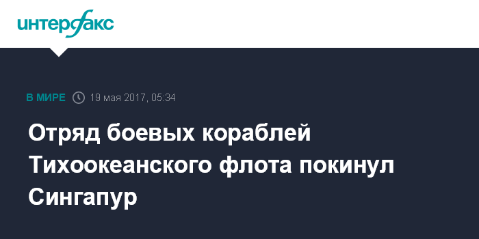 Москва. 19 мая. INTERFAX.RU - Отряд боевых кораблей Тихоокеанского флота (ТОФ) в пятницу завершил визит в Республику Сингапур.