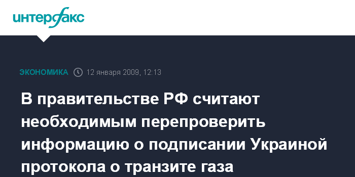 Москва. 12 января. INTERFAX.RU - Российской стороне необходимо проверить информацию о том, что Украина подписала протокол о транзите газа без оговорок, заявил пресс-секретарь премьер-министра РФ Дмитрий Песков.
