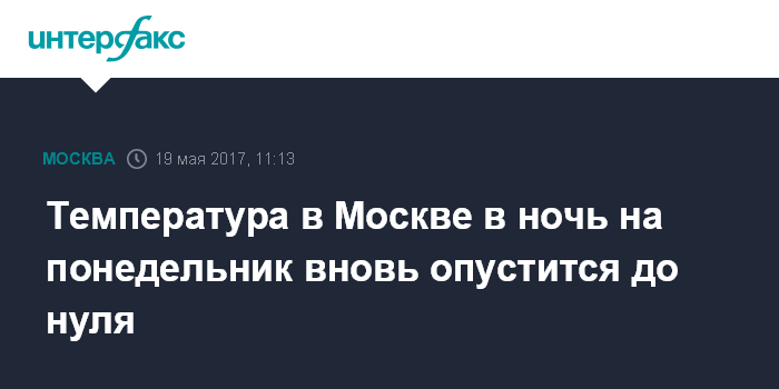 Температура в Москве в ночь на понедельник вновь опустится до нуля