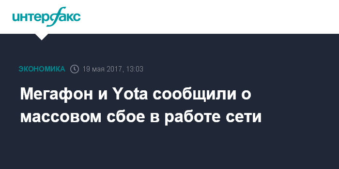 Москва. 19 мая. INTERFAX.RU - Сети ПАО "Мегафон" и оператора Yota (работает на сетях "Мегафона") испытывают неполадки в работе сети, сообщается в твиттерах операторов.