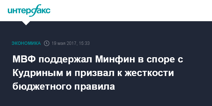 Москва. 19 мая. INTERFAX.RU - Минфин РФ получил поддержку в споре со своим бывшим руководителем о степени жесткости будущего бюджетного правила со стороны Международного валютного фонда.