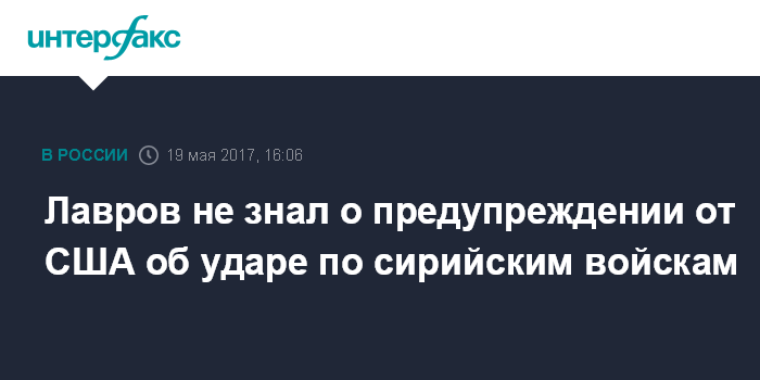 Москва. 19 мая. INTERFAX.RU - Глава МИД РФ Сергей Лавров заявил, что не знает о предупреждении со стороны США в адрес России об ударе по правительственным силам на юге Сирии.