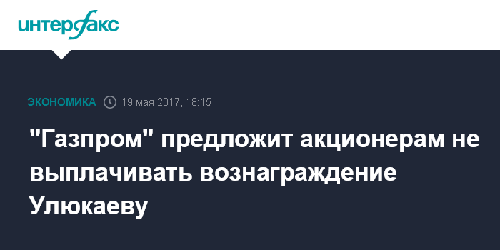 Москва. 19 мая. INTERFAX.RU - Совет директоров "Газпрома" предлагает акционерам на годовом собрании принять решение не выплачивать вознаграждение экс-главе Минэкономразвития Алексею Улюкаеву, сообщили в компании.