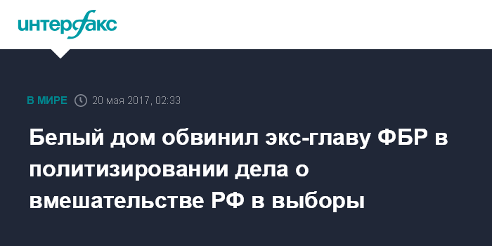 Белый дом обвинил экс-главу ФБР в политизировании дела о вмешательстве РФ в выборы