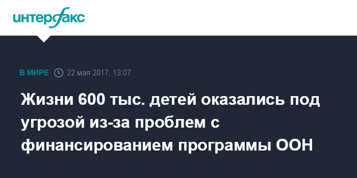 Жизни 600 тыс. детей оказались под угрозой из-за проблем с финансированием программы ООН