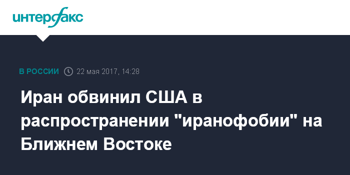 Москва. 22 мая. INTERFAX.RU - Иранские власти обвинили Вашингтон в распространении "иранофобии", призванной увеличить продажи оружия на Ближнем Востоке, а также в продаже оружия "опасным террористам", сообщил телеканал PressTV.