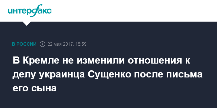 Москва. 22 мая. INTERFAX.RU - Пресс-секретарь президента РФ Дмитрий Песков подтвердил информацию о передаче в Кремль письма ребенка арестованного в России украинского журналиста Романа Сущенко.