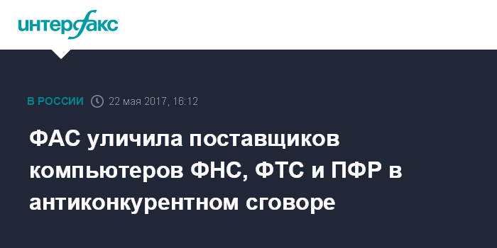 ФАС уличила поставщиков компьютеров ФНС, ФТС и ПФР в антиконкурентном сговоре