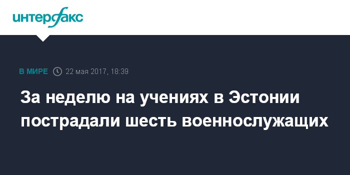 Москва. 22 мая. INTERFAX.RU - В результате нескольких инцидентов в течение прошлой недели в рамках учений "Весенний шторм" в Эстонии пострадали шесть военнослужащих.