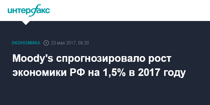 Москва. 23 мая. INTERFAX.RU - Международное рейтинговое агентство Moody's ожидает реального увеличения ВВП РФ на 1,5% в год в 2017 и 2018 годах, при этом ускорению темпов роста в отсутствие структурных реформ будет препятствовать, в частности, старение населения.