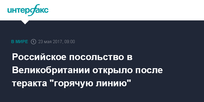 Москва. 23 мая. INTERFAX.RU - В связи с терактом в Манчестере посольство России в Великобритании открыло телефонную "горячую линию", пишет МИД РФ на своей странице в Телеграме.