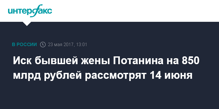 Иск бывшей жены Потанина на 850 млрд рублей рассмотрят 14 июня