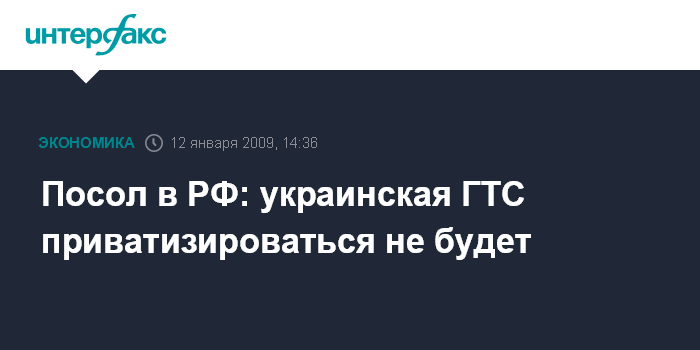 Москва. 12 января. INTERFAX.RU - Приватизации газотранспортной системы Украины не будет, заявил посол Украины в России Константин Грищенко.