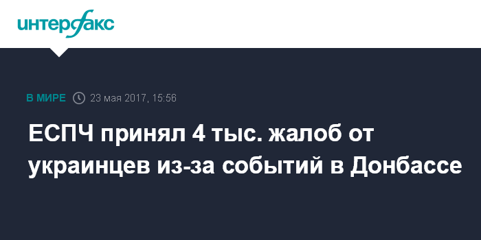 Москва. 23 мая. INTERFAX.RU - Европейский суд по правам человека зарегистрировал почти 4 тысячи жалоб от украинцев в связи с событиями на востоке страны, в том числе на захват в заложники, отмечают в Украинском Хельсинском союзе по правам человека.