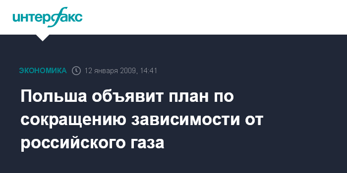 Москва. 12 января. INTERFAX.RU - Польша на этой неделе намерена объявить план по сокращению зависимости от российского газа и нефти, заявил сенатор Томаш Мисяк в интервью агентству Bloomberg.