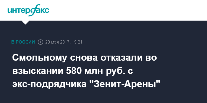 Комитет по строительству подал иски, в которых оспаривал решения арбитражного суда Санкт-Петербурга и Ленинградской области. Суд 9 марта отказал в рассмотрении двух исков о взыскании с "Инжтрансстроя-СПб" 291 млн рублей и 289,5 млн рублей соответственно. Суд мотивировал эти решения тем, что городские власти нарушили претензионный порядок.