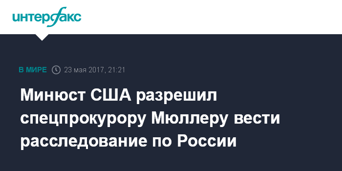 Минюст США разрешил спецпрокурору Мюллеру вести расследование по России