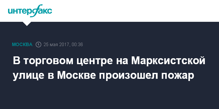 По адресу улица Марксистская, 38 произошло возгорание в здании торгового центра. По данным источника "Интерфакса", пожар произошёл в техническом помещении центра.