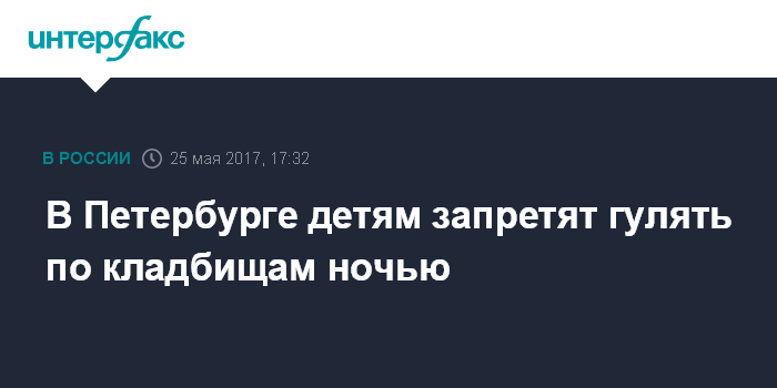 Москва. 25 мая. INTERFAX.RU - Губернатор Санкт-Петербурга Георгий Полтавченко одобрил законопроект, запрещающий несовершеннолетним гулять ночью по кладбищам, подвалам и крышам домов без сопровождения взрослых, сообщила пресс-служба регионального отделения партии "Единая Россия" в четверг.